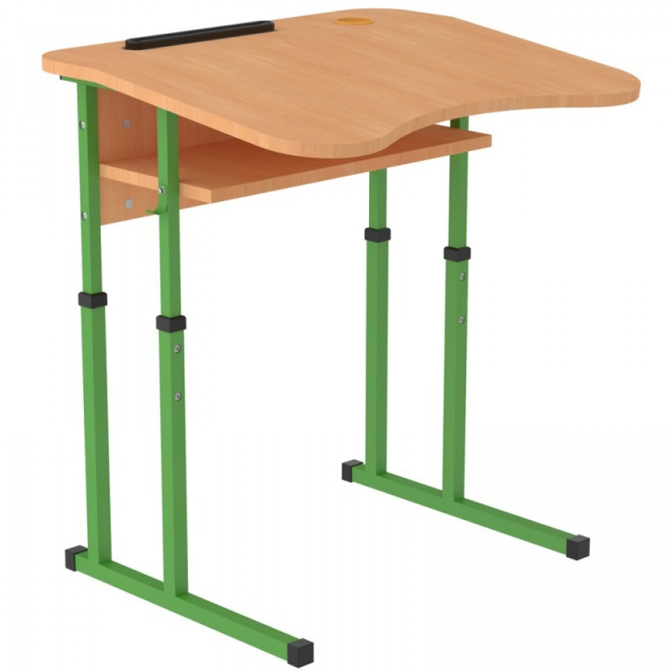 Banca scolara antiscolioza individuala Eliss cu inaltime reglabila, teava patrata, Fag / Verde