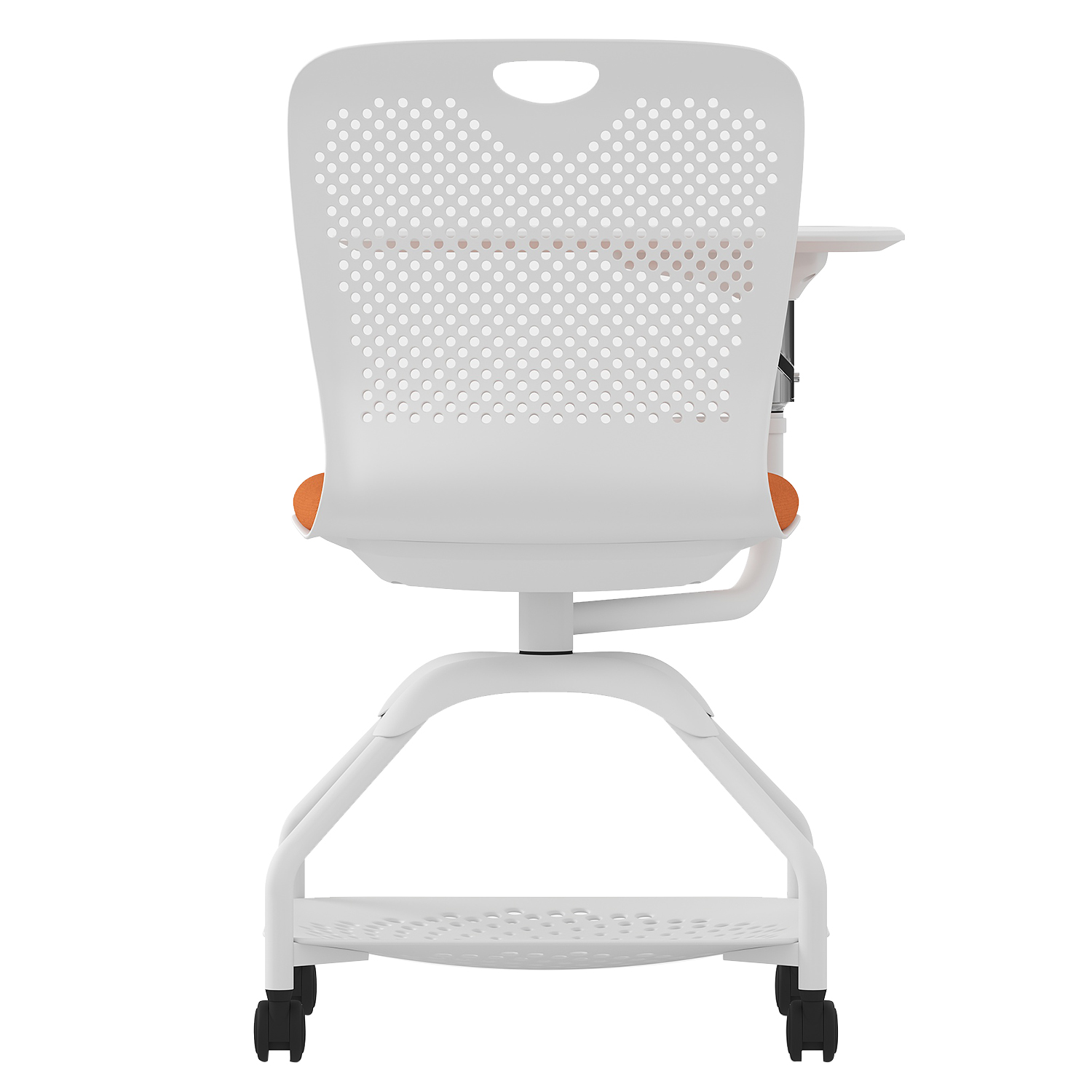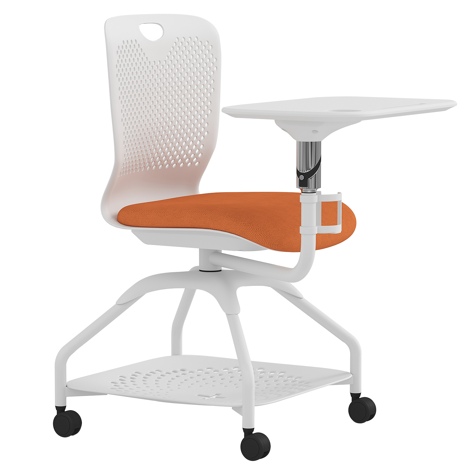 Acest scaun cu roți, cu design tip scoică, masă integrată și suport inferior, reprezintă o soluție modernă și completă pentru orice spațiu educațional sau profesional. Combină confortul cu funcționalitatea și mobilitatea, fiind alegerea ideală pentru activități care necesită flexibilitate și organizare.
