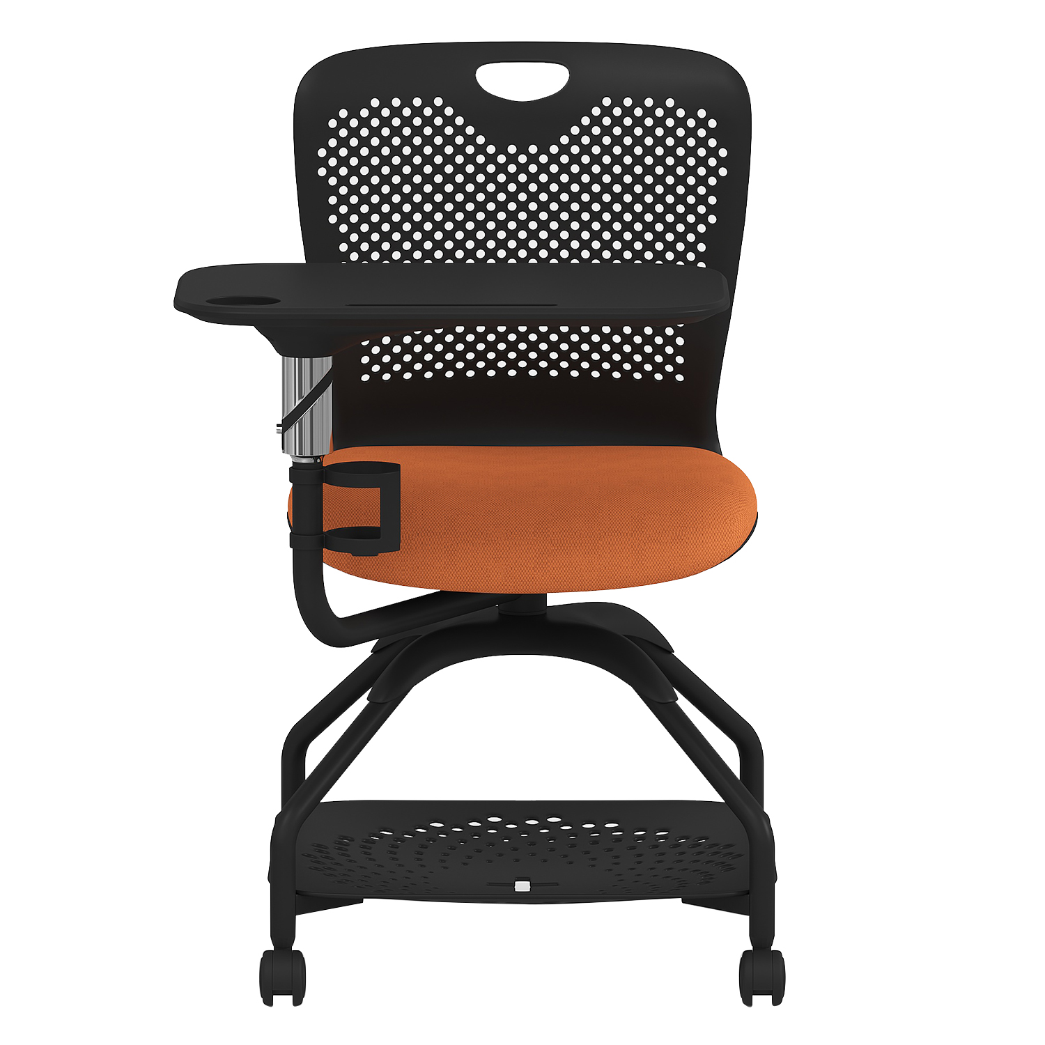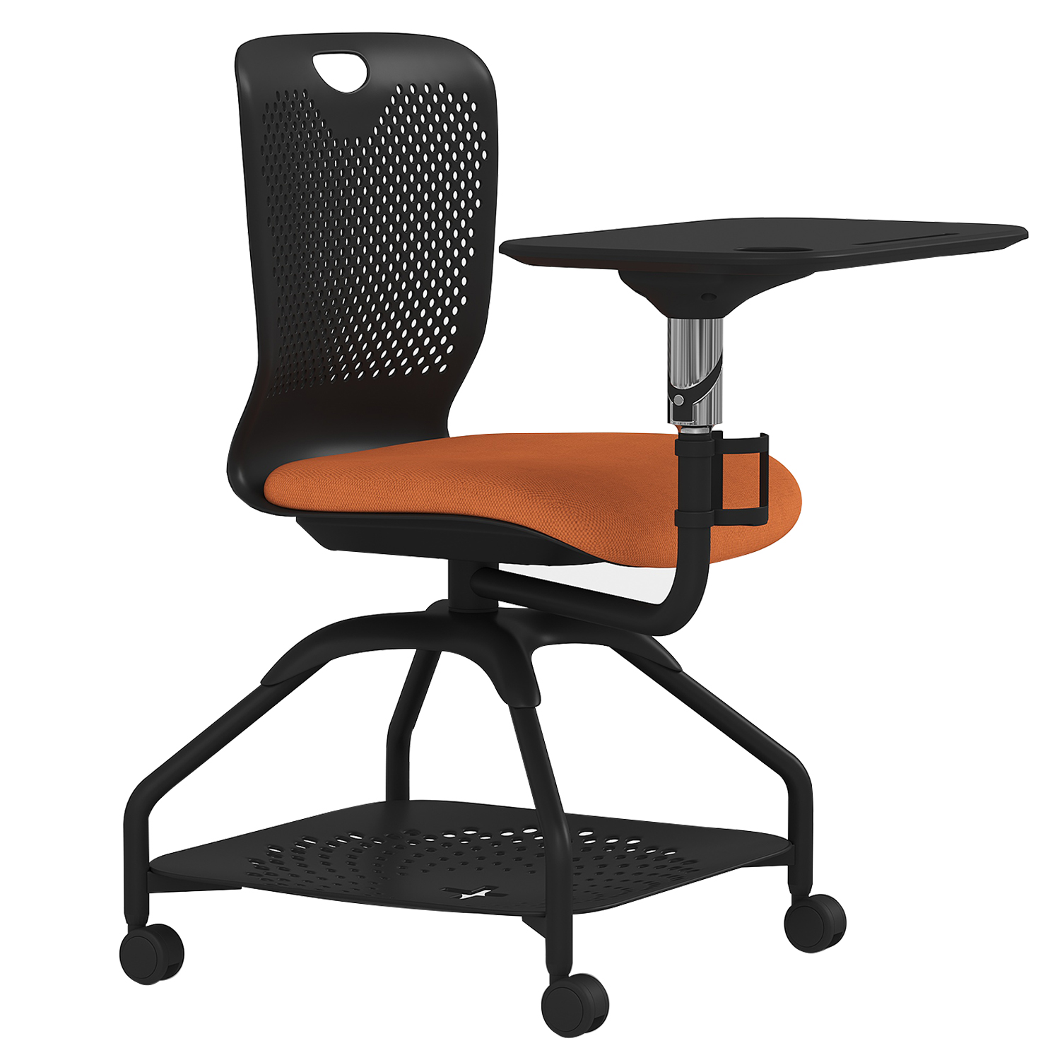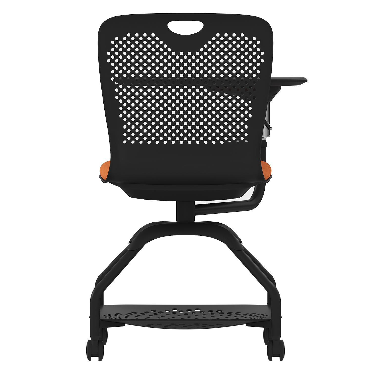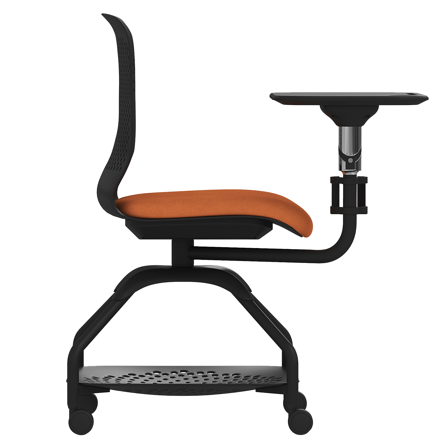 Acest scaun modern cu roți este creat special pentru spațiile educaționale și de training, unde flexibilitatea, confortul și funcționalitatea sunt esențiale. Conceput într-un design tip scoică din polipropilenă și prevăzut cu un șezut moale, tapițat cu stofă, scaunul oferă o experiență ergonomică superioară. Masuța laterală integrată și suportul inferior transformă acest model într-o soluție completă pentru lucrul individual, învățare sau activități interactive.