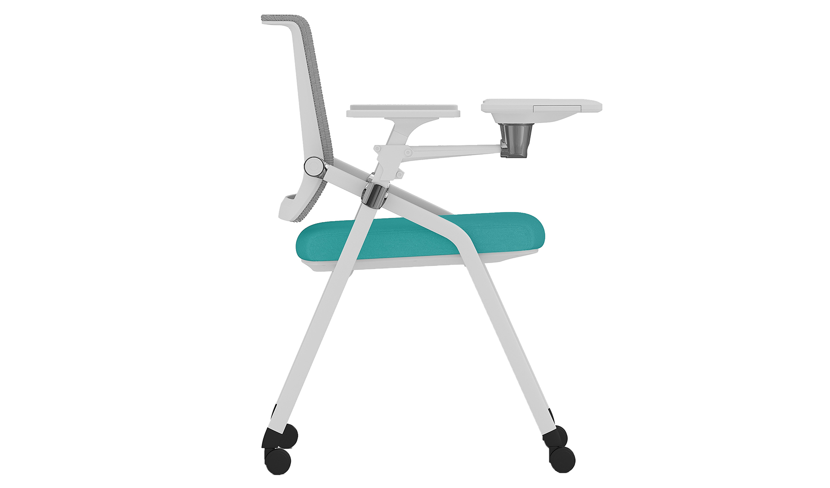 • Măsuță rabatabilă: scaunul este prevăzut cu o măsuță practică, ideală pentru notițe, laptop, tabletă sau materiale de curs. Aceasta se pliază cu ușurință atunci când nu este utilizată, economisind spațiu și sporind mobilitatea în sălile de training, conferințe sau cursuri. În plus, este dotată cu suport pentru pahar și compartimente pentru pixuri, oferind un plus de confort și funcționalitate utilizatorului. Dimensiune măsuță (L / A / Î): 430x230x740 mm